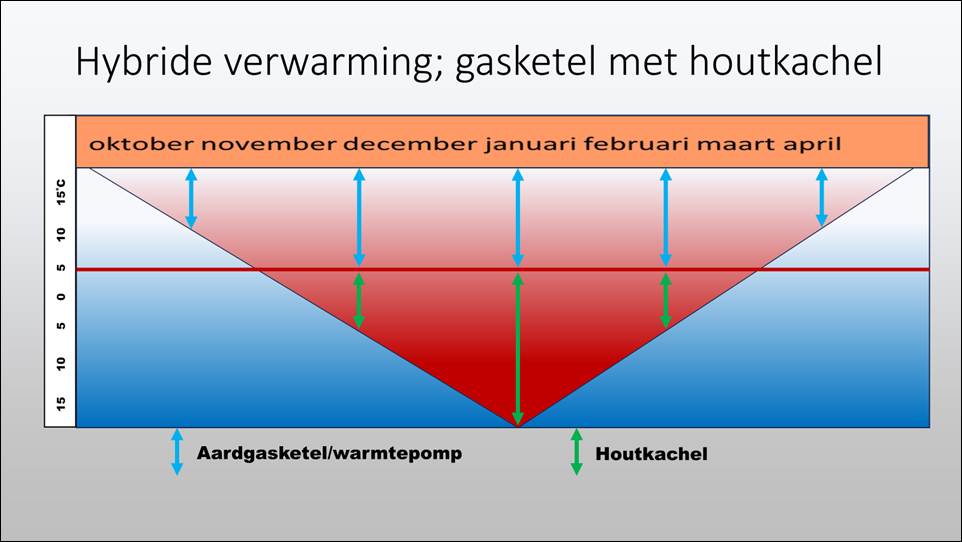 van een harsrijke houtsoort mag zo ‘n blok dik blijven. - Op een stenen vloer kan met het aanschuiven van hout al uren eerder worden gestopt.